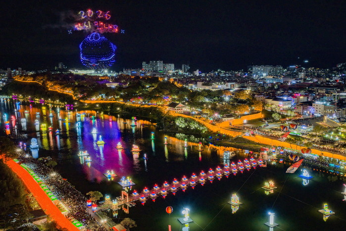 | ▲진주남강유등축제가 문화체육관광부·한국관광공사 '글로벌 축제'에 선정됐다. 진주시는 2026~2028년 연 8억원씩 총 24억원 국비 지원을 받는다. (사진=진주시) |