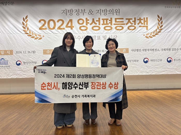 [전남=프레스뉴스] 강래성 기자= 순천시(시장 노관규)는 지난 26일 2024년 제2회 양성평등정책대상에서 우수지자체로 선정되어 해양수산부 장관상을 수상했다고 밝혔다.