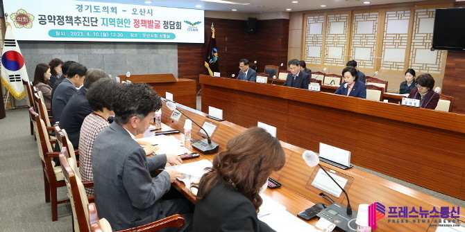 [프레스뉴스] 김대일 기자= 경기도의회 공약정책추진단장 정윤경 의원(더민주, 군포1)은 10일 오산시청 회의실에서 지역 도의원과 오산시의 지역현안 정책발굴 정담회를 개최했다.