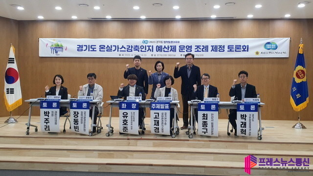 [프레스뉴스] 김대일 기자= 경기도의회 도시환경위원회 유호준 의원(더불어민주당, 남양주6)이 좌장을 맡은 「경기도 온실가스감축인지 예산제 운영 조례 제정 토론회」가 4월 12일(수) 14시 경기도의회 대회의실에서 개최됐다. 본 토론회는 경기도와 경기도의회가 공동으로 주최하는 ‘2023 경기도-경기도의회 정책토론 대축제’의 일환으로 개최되었다.