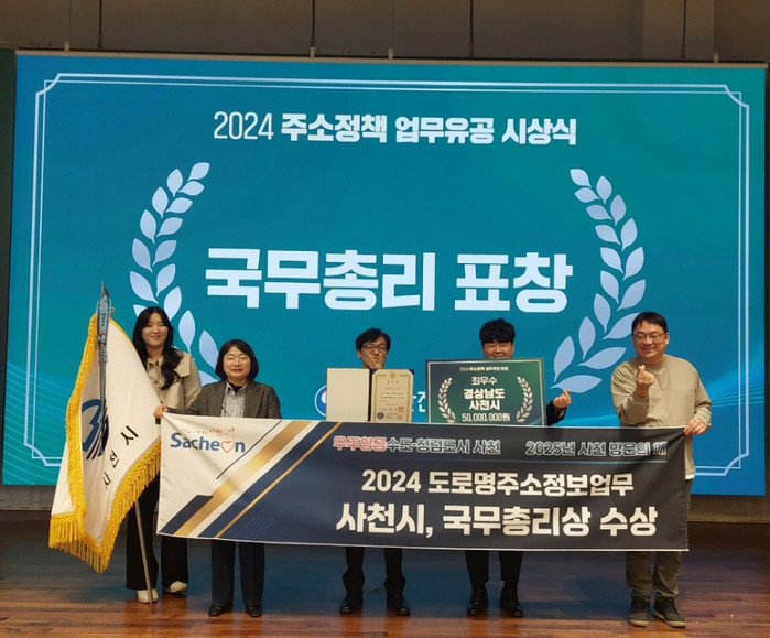 한편, 사천시는 이날 경기도 양평군 블룸비스타 호텔앤컨퍼런스에서 열린 도로명 주소정책 성과 공유 워크숍에서 전국 우수기관으로 선정돼 기관 표창(국무총리상)을 받았다.