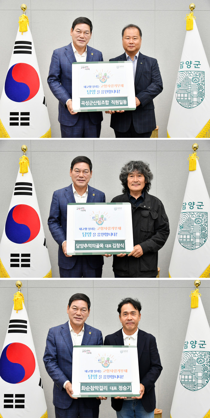 정철원 담양군수는 “소중한 마음으로 담양에 기부해주신 분들께 진심으로 감사드린다”며 “기부금은 군민 복리 증진과 지역 발전을 위해 투명하고 가치 있게 사용할 것”이라고 밝혔다.